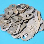 Fifty used Meccano Zinc Fishplates, part 10, bulk pack.